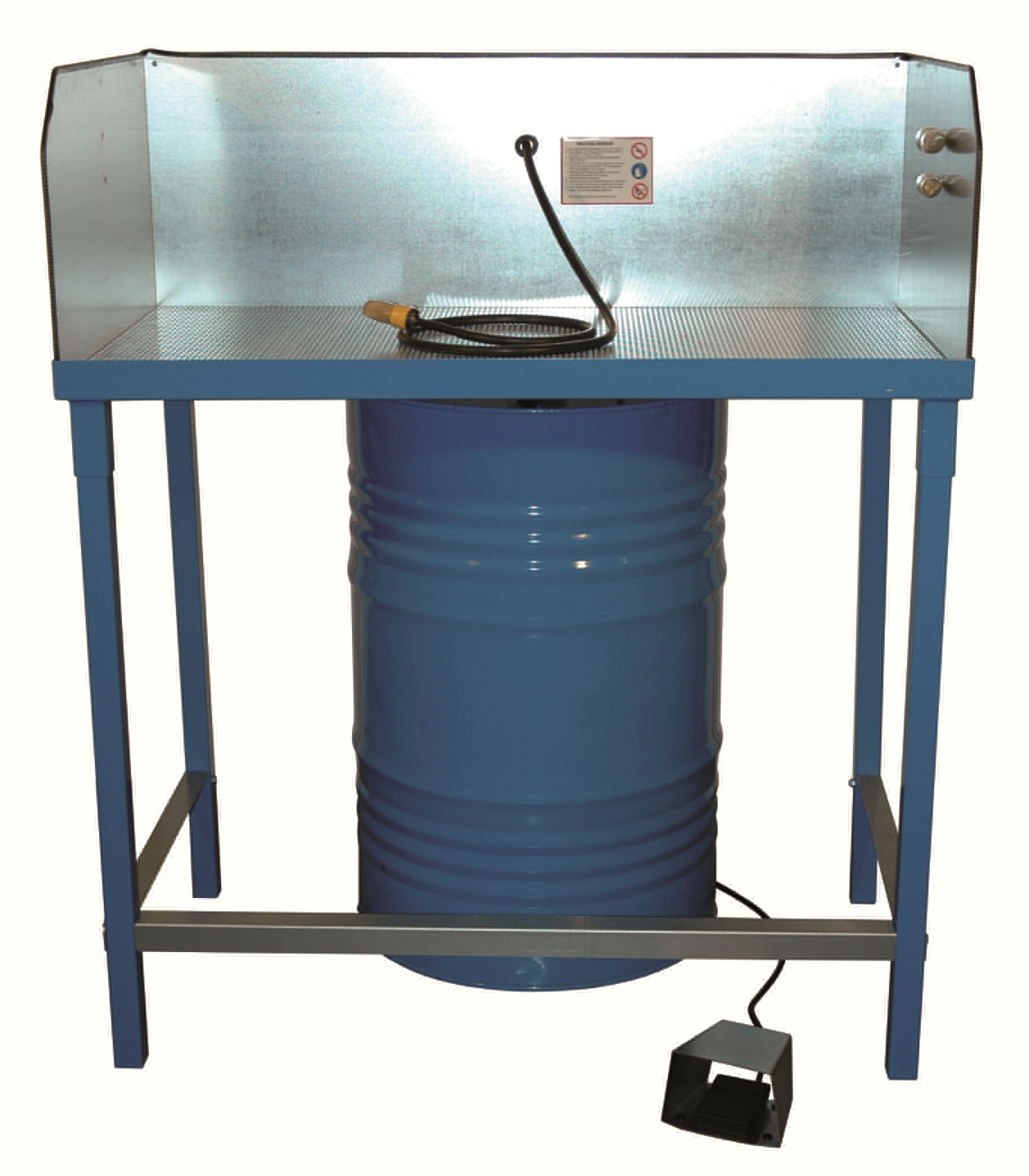 Reinigungswanne auf standfestem Untergestell mit Querverstrebungen. Das Lochblech aus verzinktem Stahlblech ist in eine Wanne mit konischem Ablauf eingelassen. Rück- und Seitenwände sind feuerverzinkt mit Kantenschutz ausgestattet.