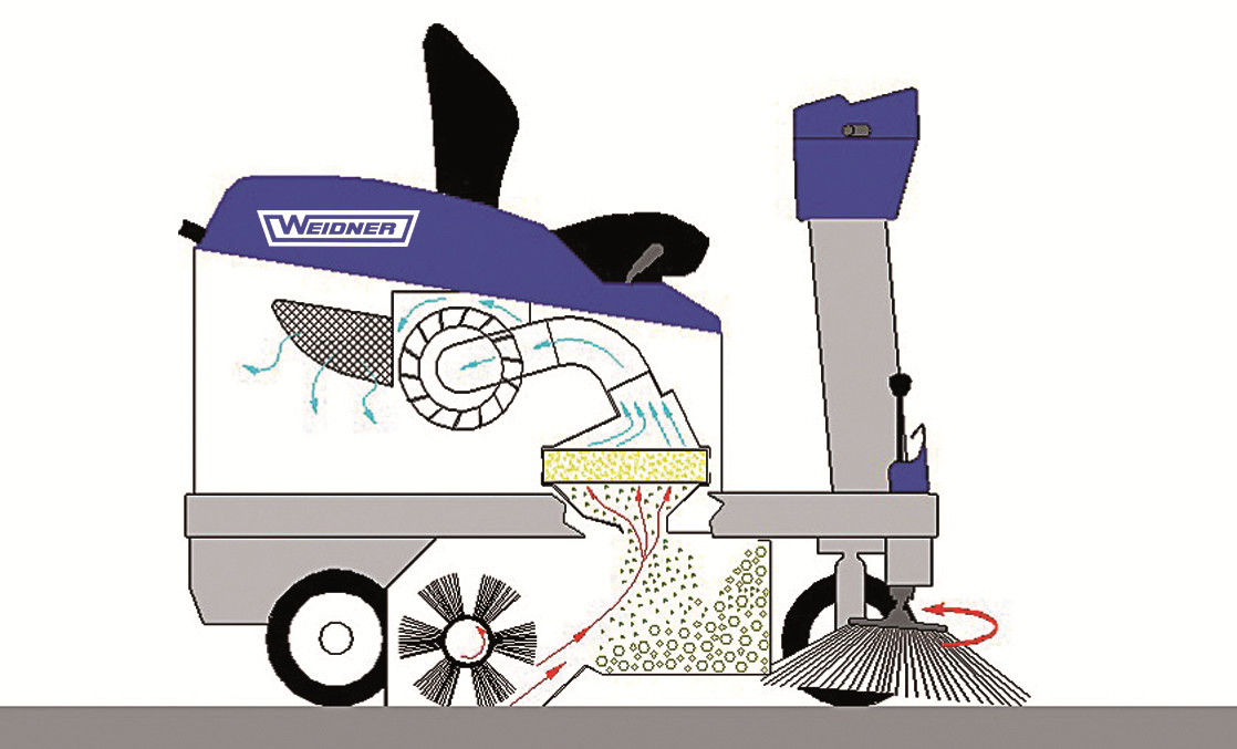 Ein großdimensionierter Polyester-Flachfilter mit elektrischer Filterabrüttlung sorgt für staubfreies Kehren.