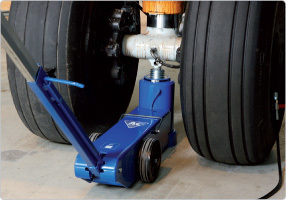 - Der Heber funktioniert mit Druckluft, Nitrogen direkt vom Flugzeugrad oder mittels Nitrogenflasche