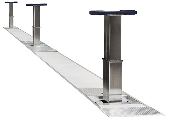 - Die Traversen und Aluminiumrollenabdeckung sind bodeneben entlang der gesamten Unterflurhebebühne