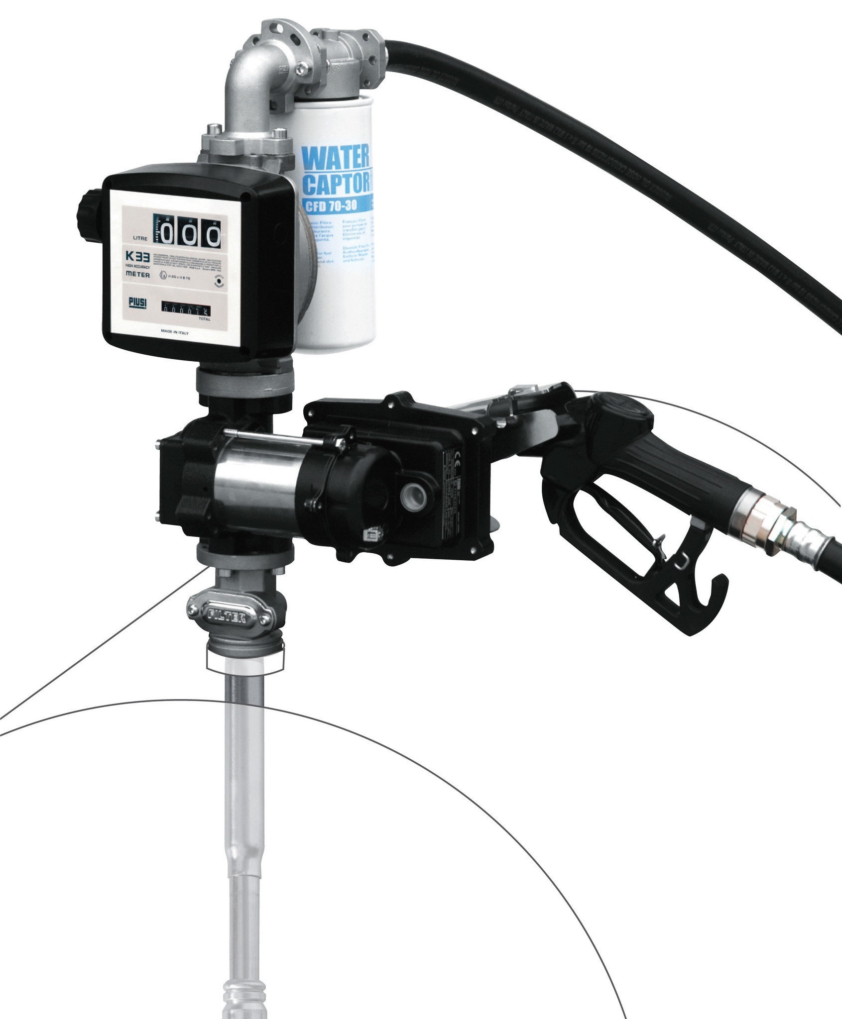 - 4 mt. Abgabeschlauch mit Zapfpistole