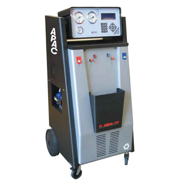 Professionelles vollautomatisches Klimaservicegerät zum Evaquieren, Vakuumieren und Befüllen. Das Modell 1700E ist für Fahrzeuge, deren Klimaanlage mit dem neuen Kältemittel R1234y sind. Dieses Gerät entspricht den einschlägigen europäischen Sicherheitsbestimmungen über die Handhabung des Kältemittels R1234y für alle PKW, LKW, Traktoren usw.. Sämtliche Betriebsabläufe laufen im Automatikmodus vollständig automatisch ab.
