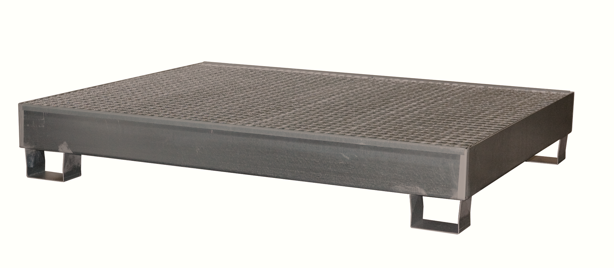 Auffangwanne mit Gitterrost und Füßen, verzinkt.