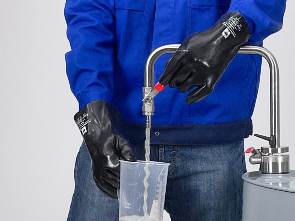 Durch die Fassverschraubung und den Absperrhahn kann das Gebinde und die Pumpe hermetisch verschlossen werden, unerwünschte Dämpfe können nach dem Abfüllen nicht austreten.
