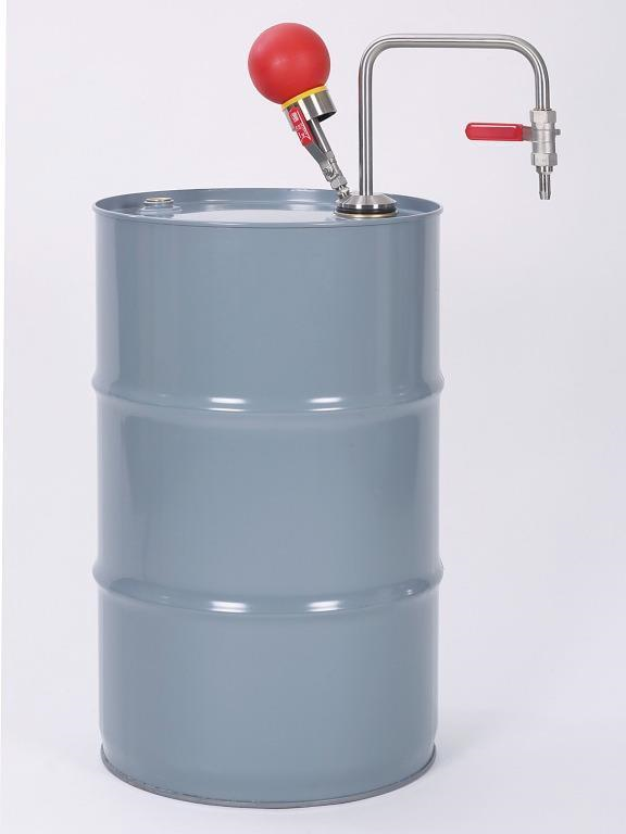 Für Behälter bis 60 Liter. Die Pumpe ist gasdicht und komplett absperrbar mit zwei Kugelhähnen.