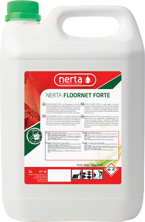 NERTA FLOORNET FORTE ist ein leicht alkalisches, schwach schäumendes und parfümiertes Reinigungsmittel für die Unterhaltsreinigung von Böden in Großküchen, Werkstätten usw.